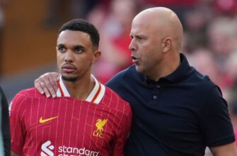 Liverpool manager Arne Slot was spotted celebrating