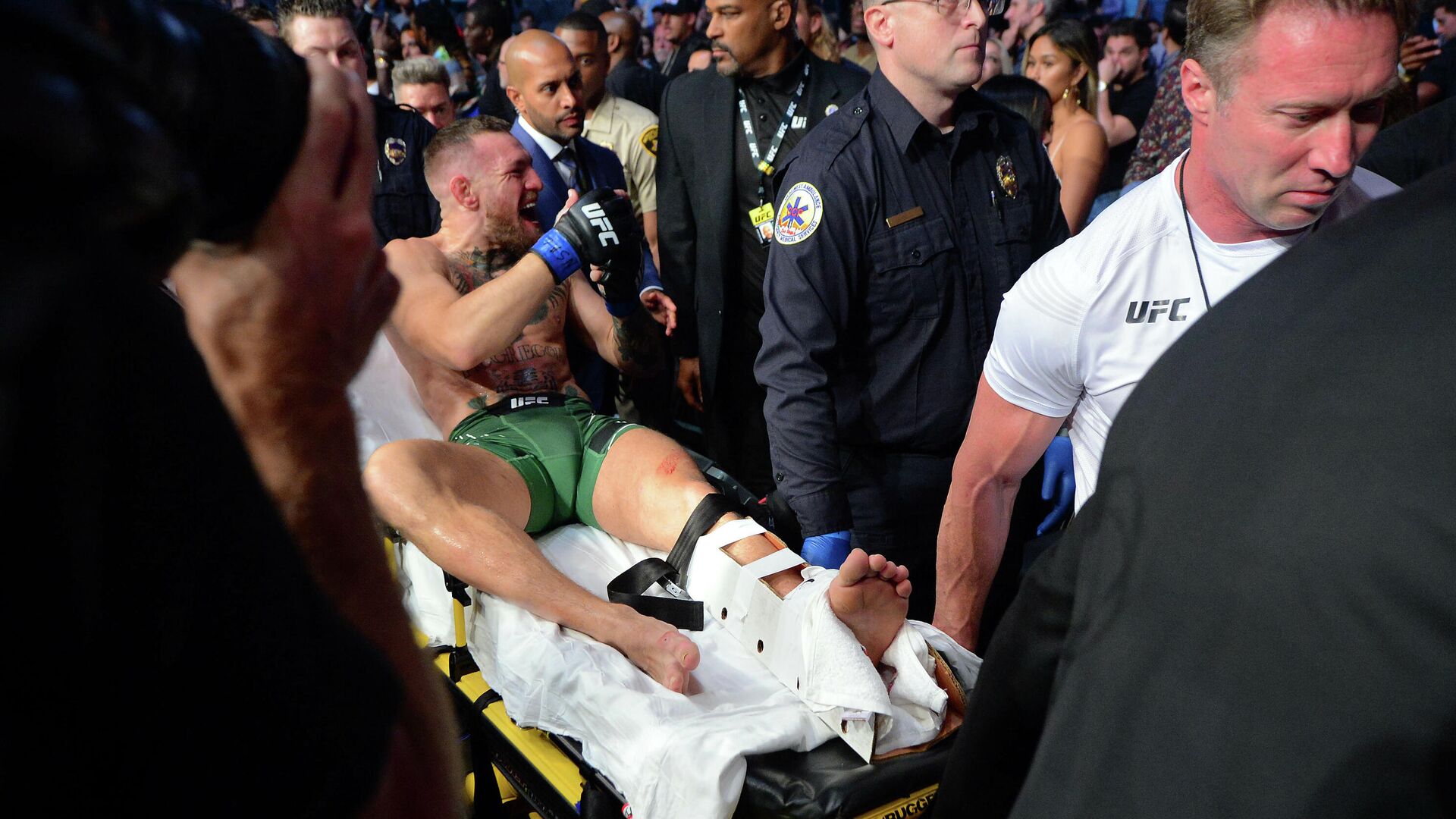 The 23-year-old was visibly in pain, clutching his left knee. He remained on the ice while trainers attended to him before teammates assisted him off the ice.
