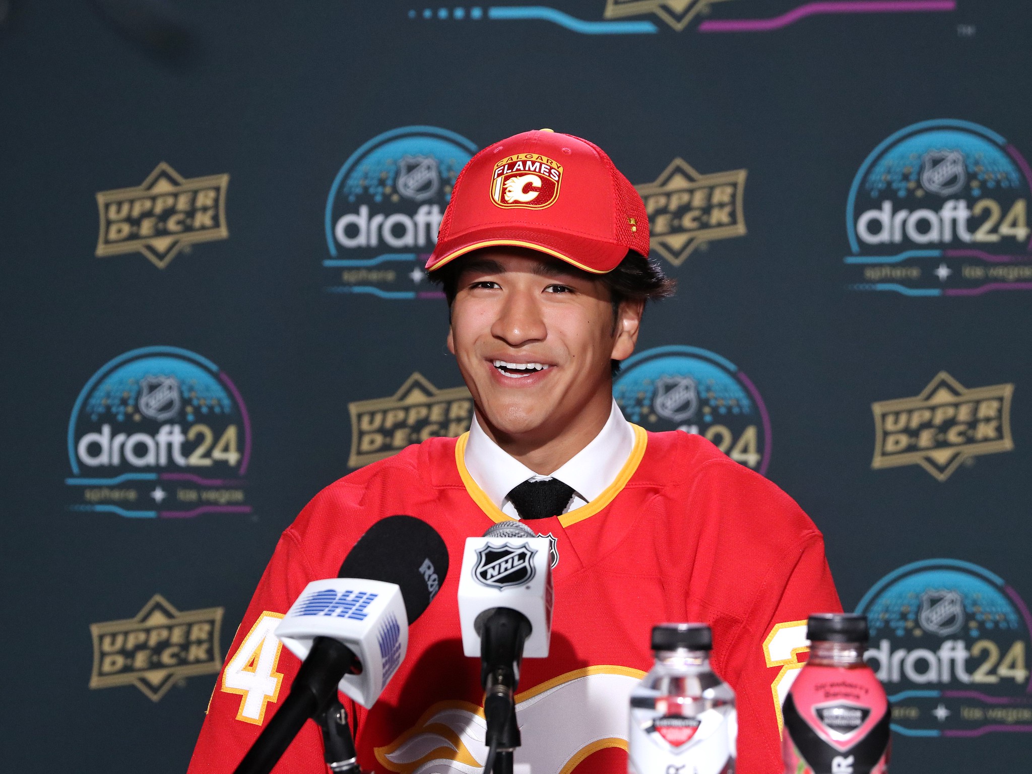 Given how closely the defenceman`s every move has been watched since he was drafted ninth overall last summer, an update on his wardrobe seemed a fitting topic on Wednesday at WinSport, following the start of the Flames` development camp.